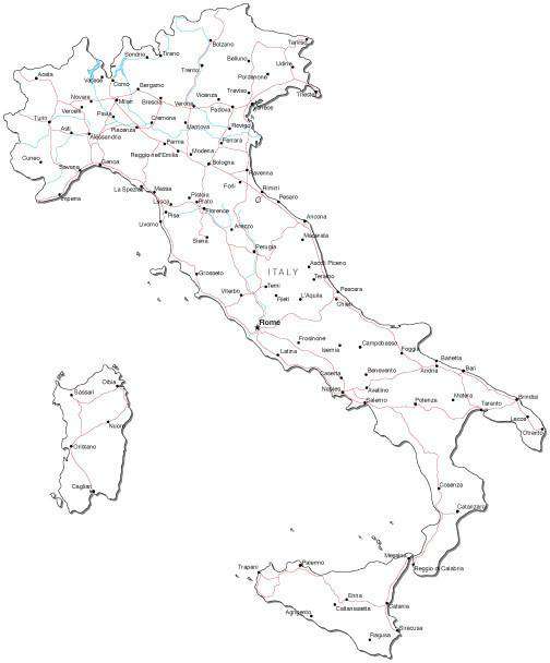 Italy Black & White Road map in Adobe Illustrator Vector Format