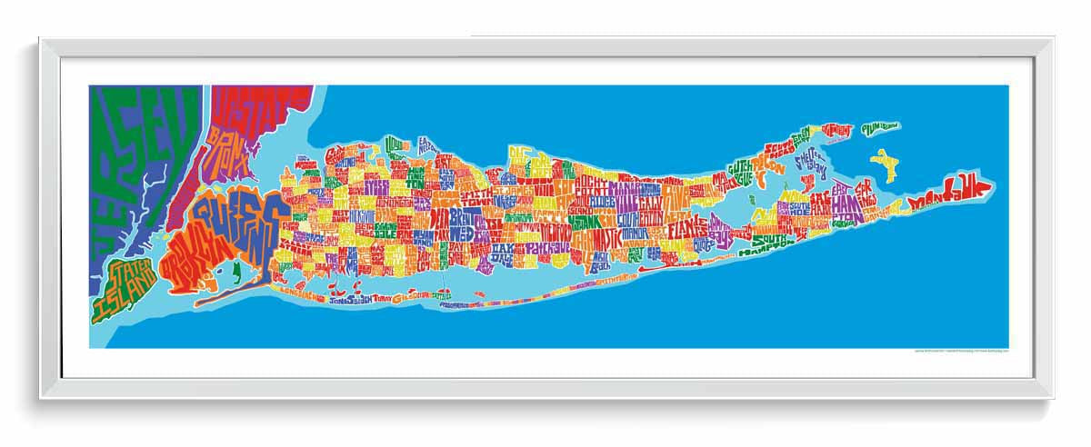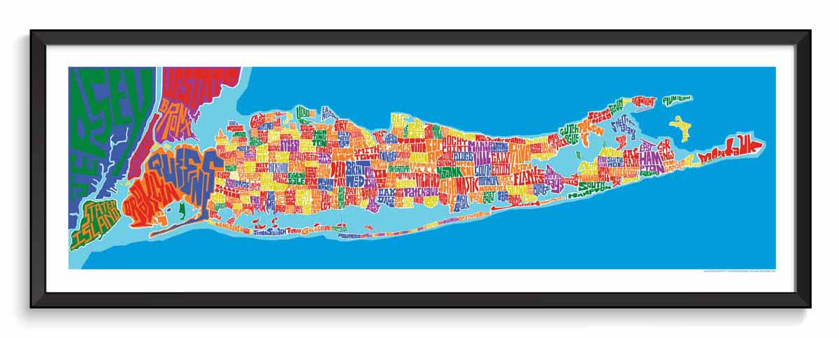 Long Island Towns Typography Map โ LOST DOG Art & Frame