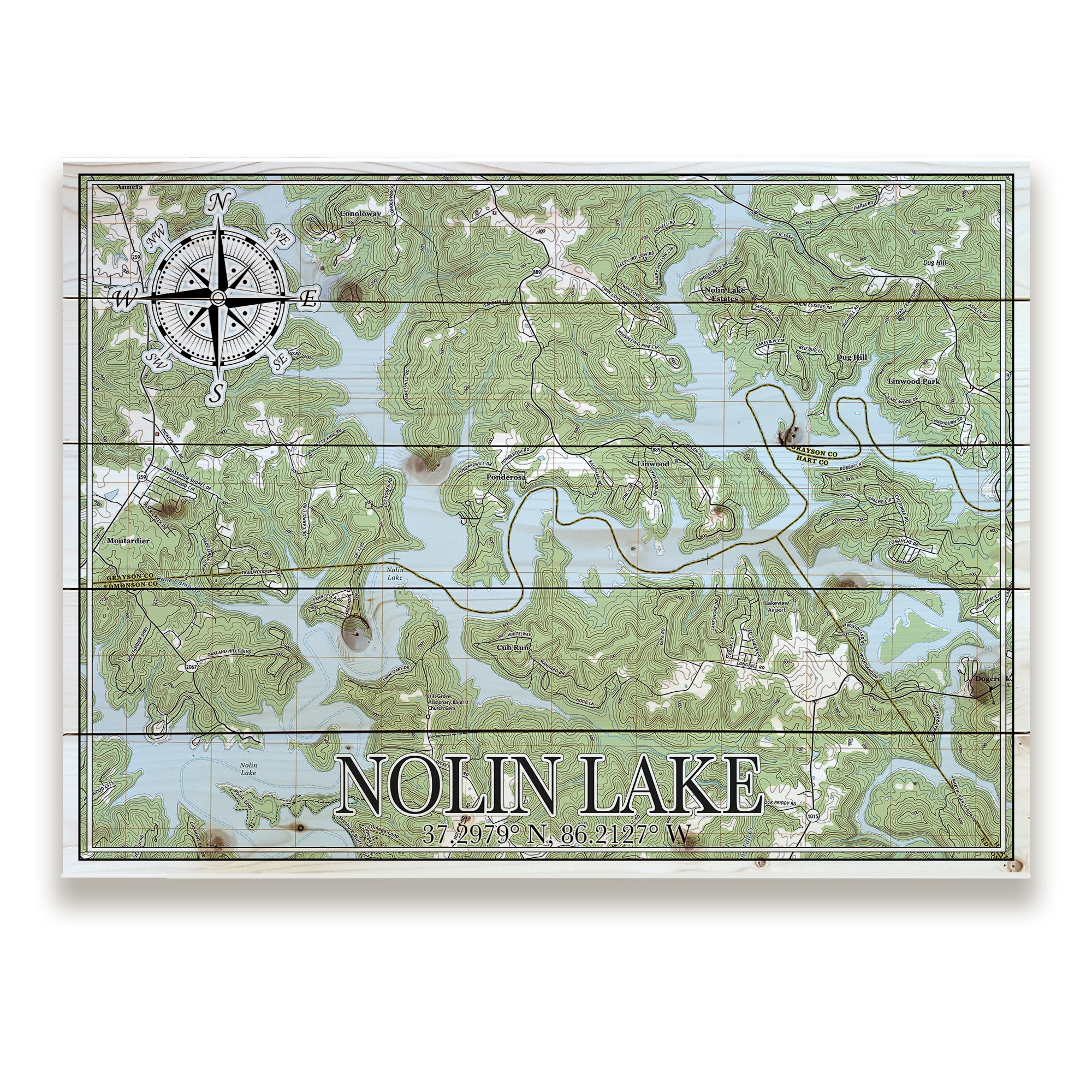 Nolin River Lake, KY Laser Cut Wood Map